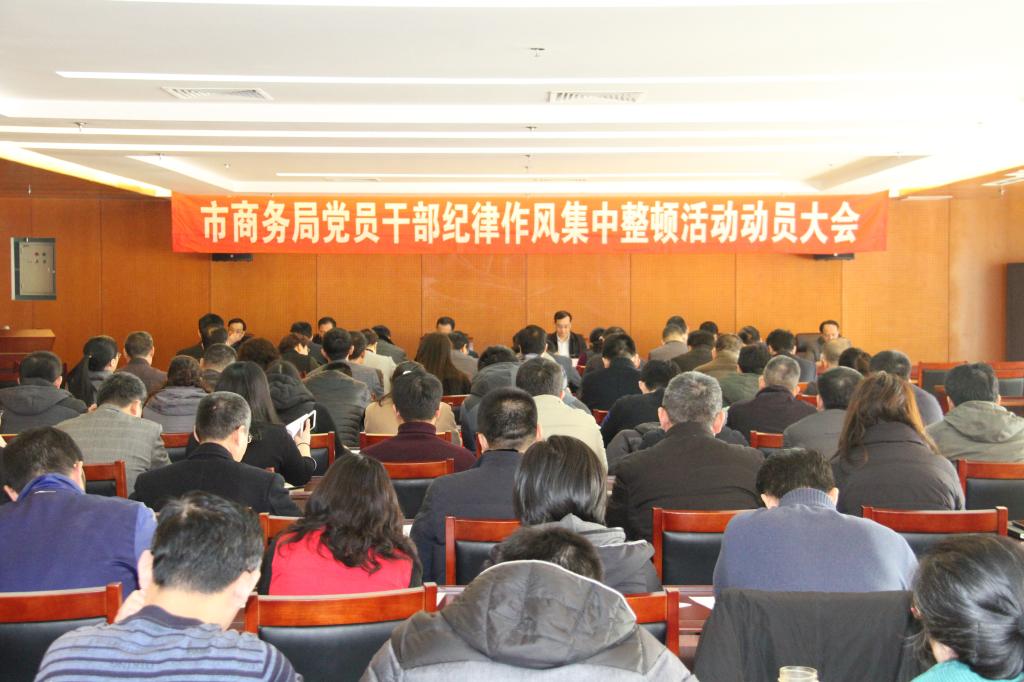 2月8日,市商务局党员干部纪律作风集中整顿活动动员大会召开。局党组书记、局长吴昌力同志出席会议并讲话,会议由党组副书记、副局长王安春同志主持,市纪委派驻八组副组长宋永峰同志到会指导。局机关、市境外招商促进中心、市会展办全体干部职工参加了会议。